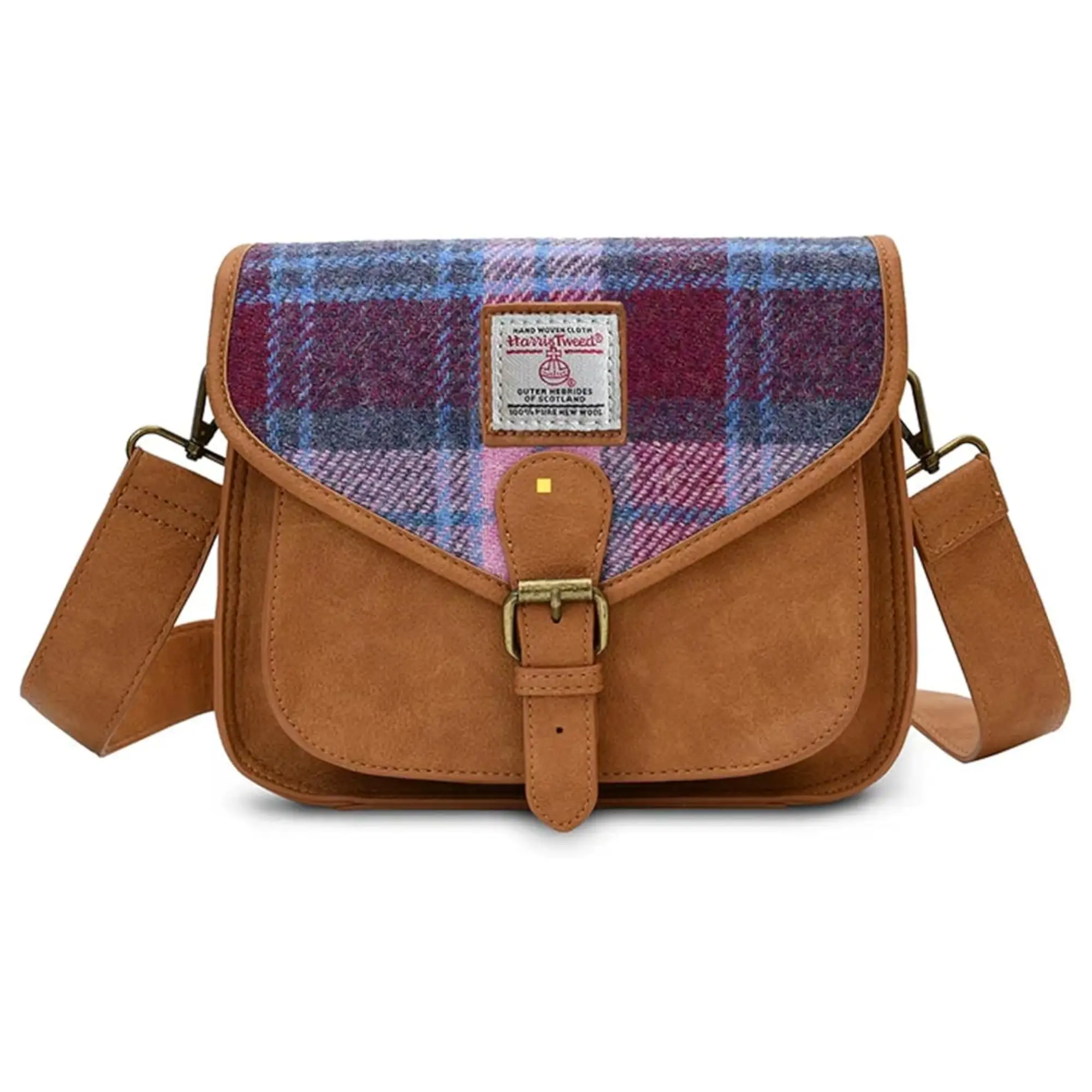 A timeless fusion of authentic Harris Tweed fabric and high-quality leather for a classic yet modern everyday handbag. This Islander Saddle Bag combines premium materials with practical design — perfect for daily outings, travel and holiday styling.