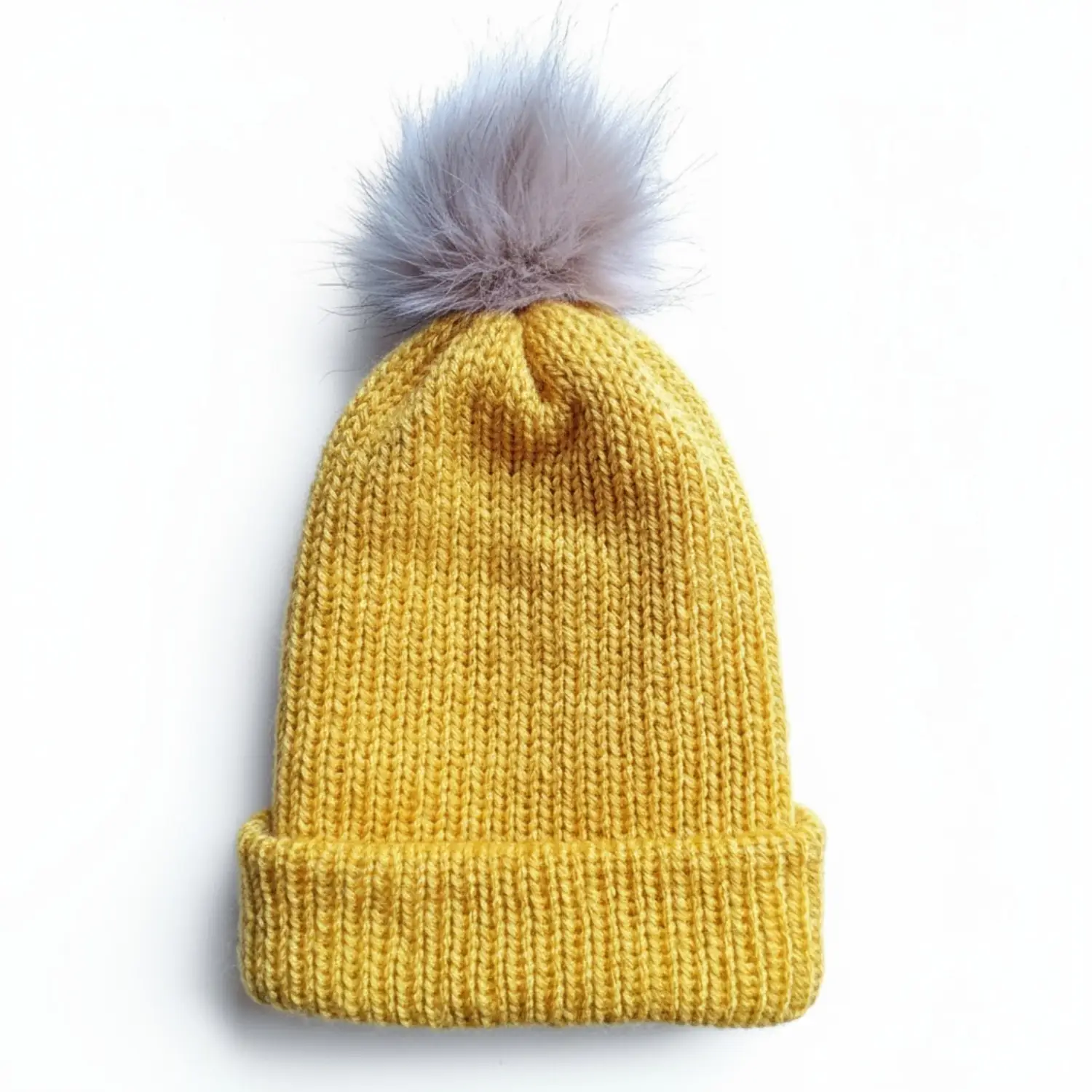 Связана из мягкой, тёплой пряжи и украшена пушистым светло-серым помпоном — эта уютная шапка добавит яркое и тёплое настроение к любому образу.